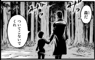グリシャがエレンに力を託す場所が森であり、サシャの父が「我々は今、森の中にいる」と語ったのも森。戦いの連鎖や宿命の象徴として、森は重要な背景になっているのかもしれません。 -