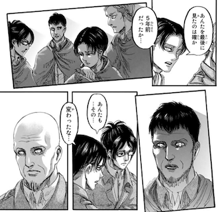 リヴァイが「お前、変わったな」と言うように、見た目も性格もだいぶ変化しています。髪の毛がすっかりなくなってしまったので最初は気づかないかもしれませんが、重要な過去を背負っている人物です。